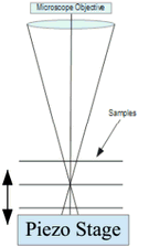 Motorized XY stage with stepper motors and encoders, Piezo driven Z stage.